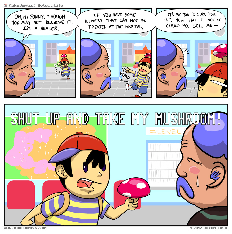 If I was a part of big forums I’d spread the videos around, but unfortunately I’m not anymore. Great comic, I hate the freakin mushrooms.